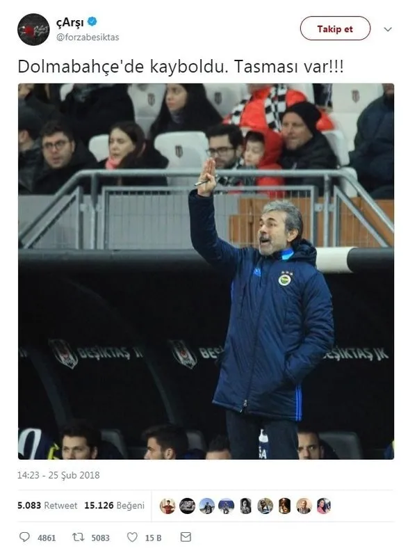 Alınan 3-1'lik zaferin ardından çArşı'nın resmi twitter hesabından Fenerbahçe Teknik Direktörü Aykut Kocaman resmi "Dolmabahçe'de kayboldu. Tasması var!!!" notuyla paylaşıldı.