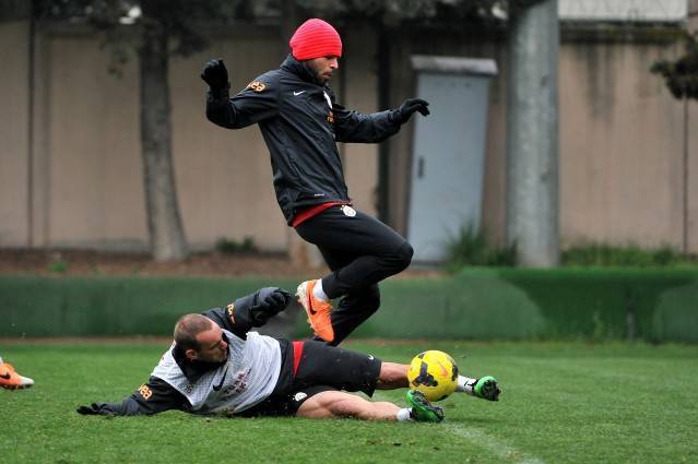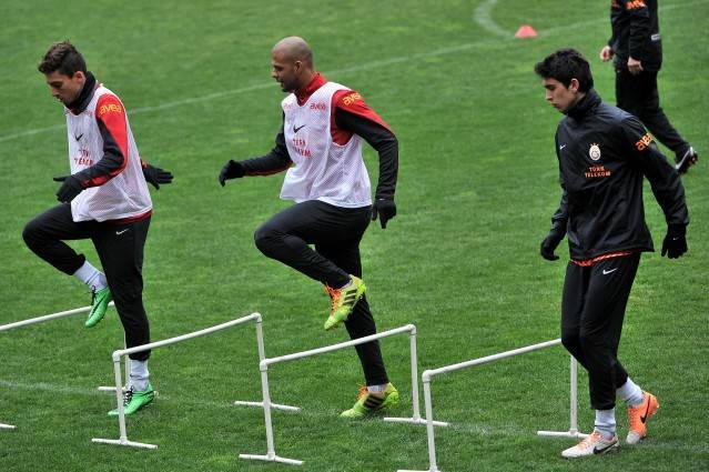 Hakan Balta, tedavisinin ardından sahada düz koşu çalışması yaparken, Aurelien Chedjou sakatlık koruma özel programı dahilinde çalıştı.
