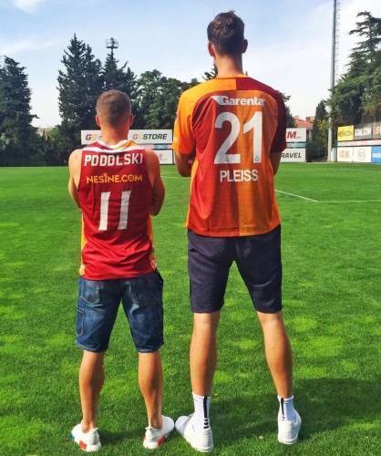 Galatasaray'ın Alman futbolcusu Lukas Podolski ile Alman basketbolcusu Tibor Pleiss, Florya'da bir araya geldi.