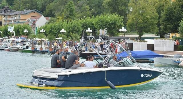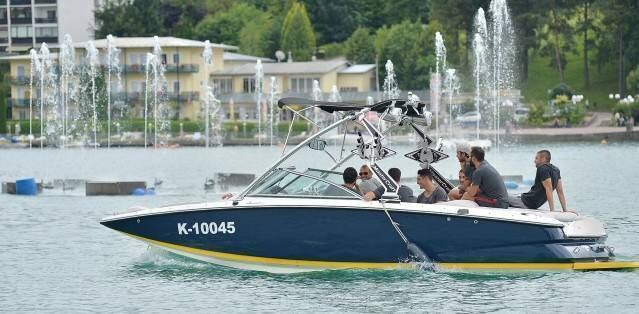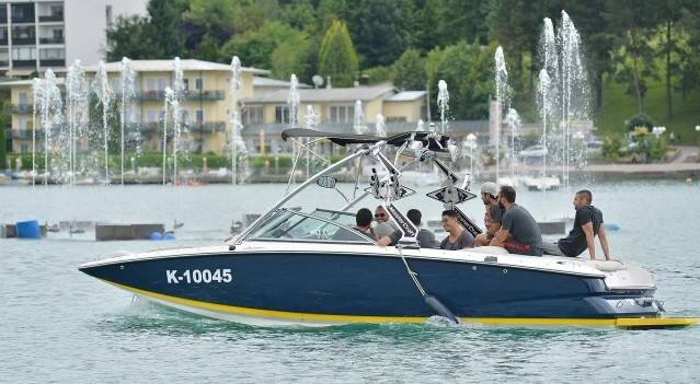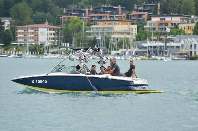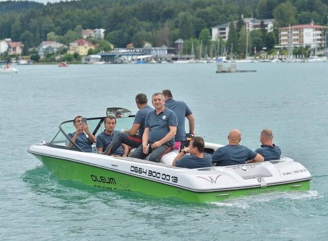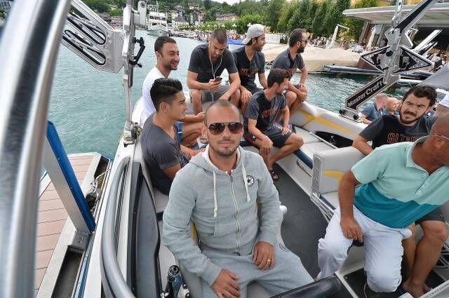 Hollandalı yıldız Wesley Sneijder'in kullandığı hız teknesiyle Velden Gölü'nde gezi yapan sarı-kırmızılı oyuncular, keyifli anlar yaşadı.