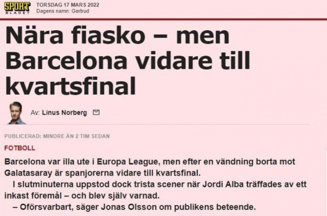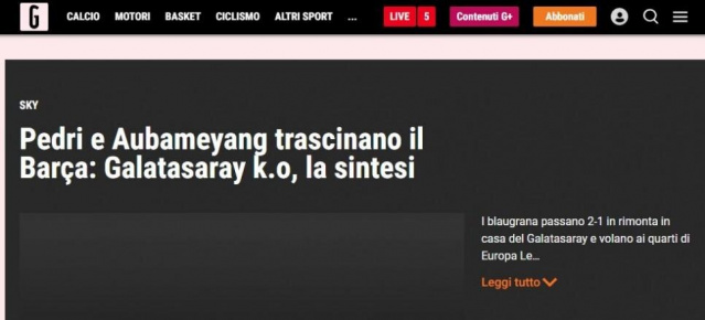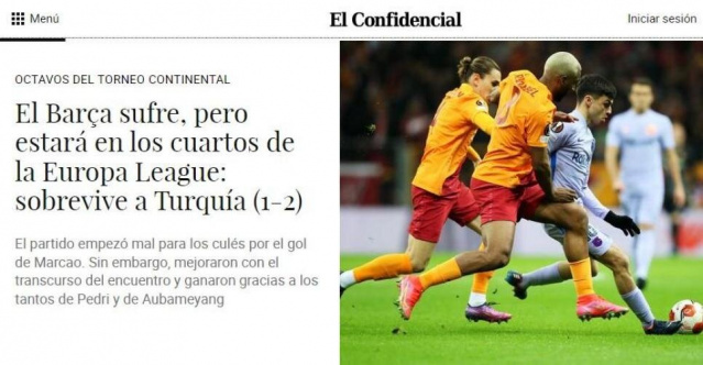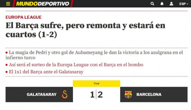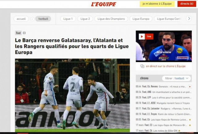 Galatasaray'ın UEFA Avrupa Ligi Son 16 Turu'nda Barcelona'ya 2-1 yenilerek elenmesi, Avrupa'da geniş yer buldu. İşte ayrıntılar...