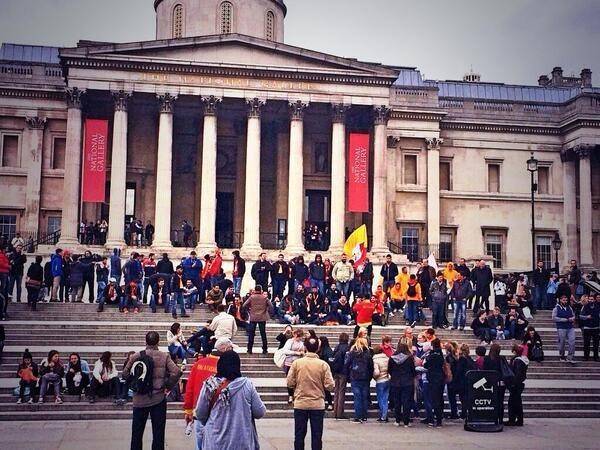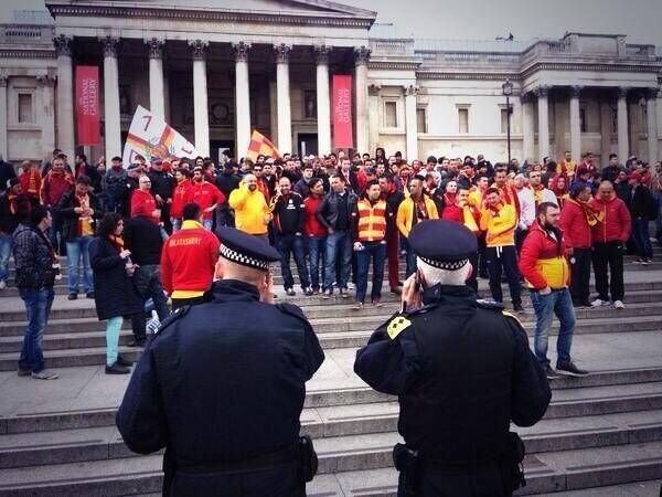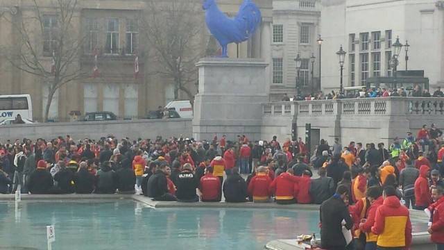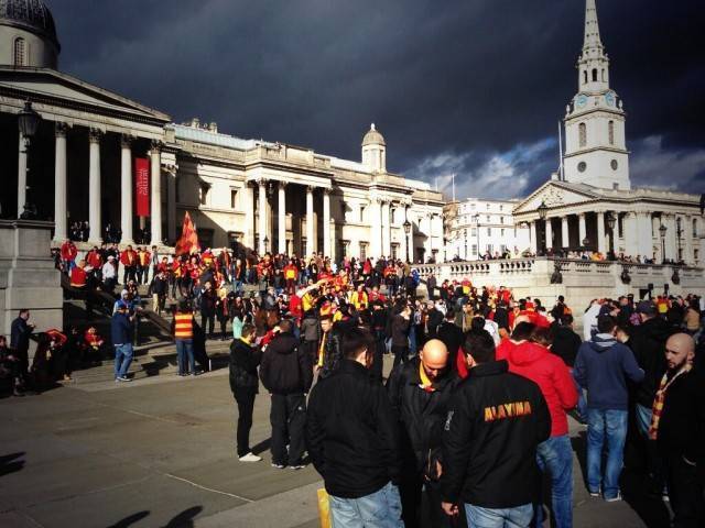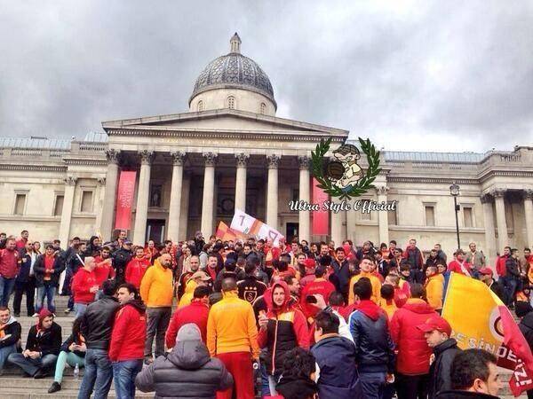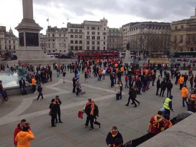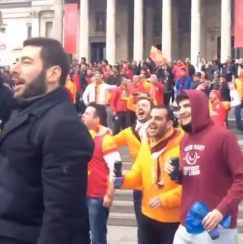 Galatasaray taraftarı, Chelsea maçı öncesi Londra sokaklarında gövde gösterisi yaptı.