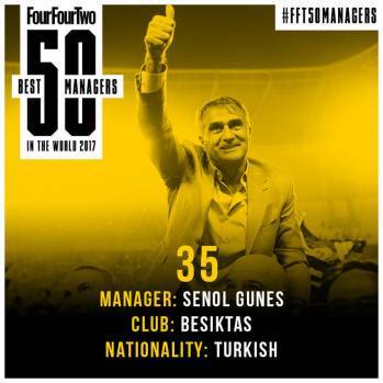 FourFourTwo dergisi, dünyanın en iyi 50 teknik direktörü listesini açıkladı. Listeye Türkiye'den sadece Şenol Güneş girerken, Galatasaray'ın efsane ismi George Hagi de listede kendine yer buldu.