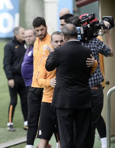 Kadro dışı bırakıldıktan sonra affedilen ve yeniden takıma dahil olan Sabri Sarıoğlu ile karşılaşan Fildişi'li, bu oyuncuyla da saha kenarında şakalaştı.