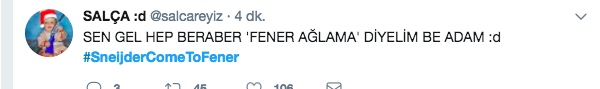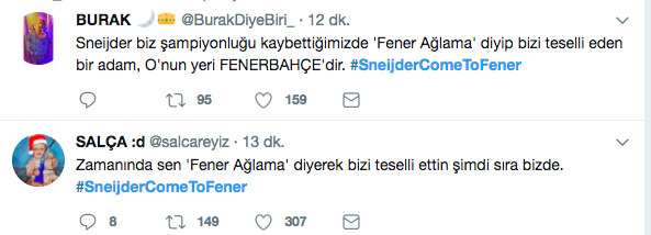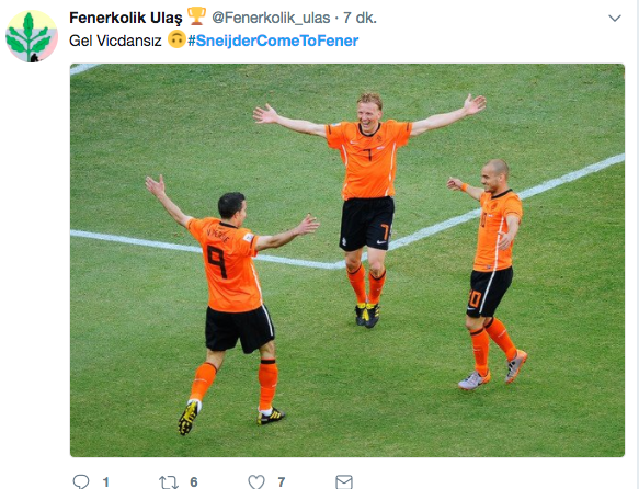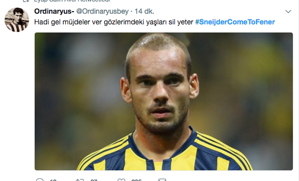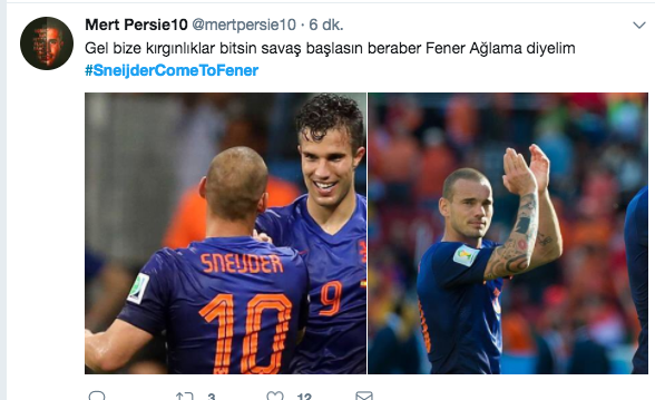 Belhanda'nın Sneijder'den 10 numaralı formayı aldıktan sonra Hollandalı yıldızın ayrılmasına kesin gözüyle bakan Fenerbahçeli taraftarlar Twitter'da #SneijderComeToFener etiketi ile yıldız futbolcuya çağrıda bulundular. İşte o tweetler...