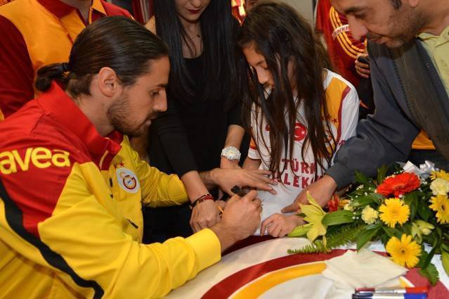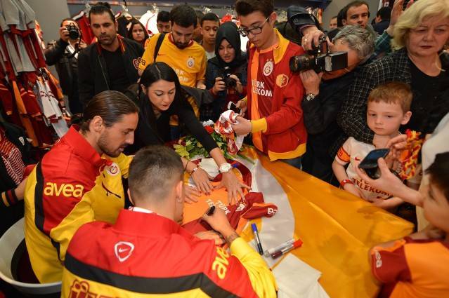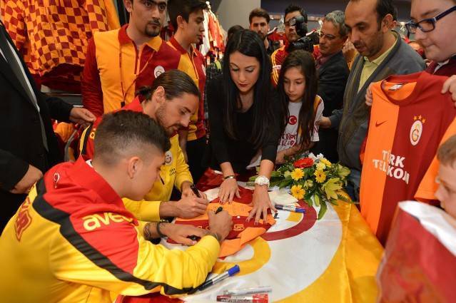 Taraftarın ilgisinden çok memnun olduğunu söyleyen futbolcularımız, yaklaşık 1saat boyunca yüzlerce taraftarımızın Galatasaray lisanslı ürünlerini imzaladı.