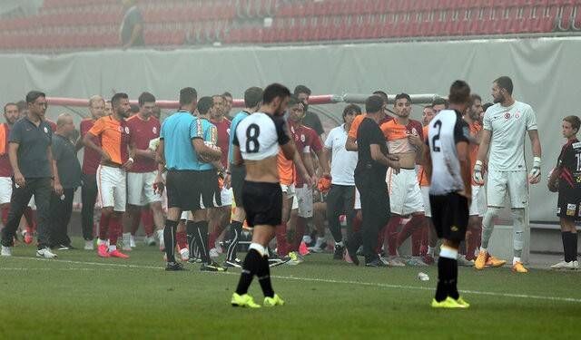 Statta bir kez daha uyarı anonsu yapıldığı anda, hakem üçlüsü soyunma odasına yönelirken, Galatasaray Teknik Direktörü Hamza Hamzaoğlu, oyuncularına işaret yaparak takımını maçtan çekti ve oyuncuları soyunma odasına götürdü.