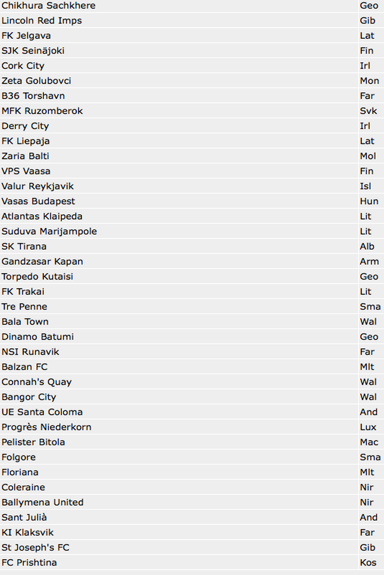 UEFA sıralamasında yüksek puanlara sahip Bayer Leverkusen, Schalke 04, Fiorentina, WfL Wolfsburg, Valencia, Dnipro, Borussia Mönchengladbach, Leicester City, Celta de Vigo ve İnter, ulusal liglerindeki kötü performanslarından dolayı gelecek sezon Avrupa Kupaları’na katılamayacak.