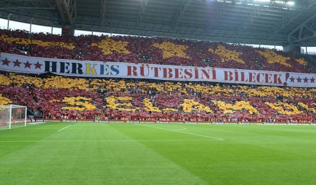 Açılan dev pankartta sarı-kırmızılı takımın olası 20. şampiyonluğunu simgeleyen dört yıldız bulunurken, "Herkes rütbesini bilecek. Galatasaray karşısında önünü ilikleyecek" yazısı yer aldı.