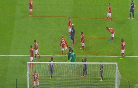 Yenilen gollerde ise Galatasaray'ın 12 golden 3'ünü set hücumları sonrasında kalesinde gördüğünün altı çizildi. Kornerler ve duran topların da takımın yumuşak karnı olduğuna vurgu yapıldı. Bu pozisyonlarda tüm takımın ceza sahası içine dizildiği ve oyuncuların oyuncuların birbirini destekler şekilde arkalı önlü çizgi halinde durdukları belirtildi.