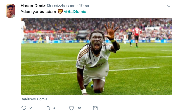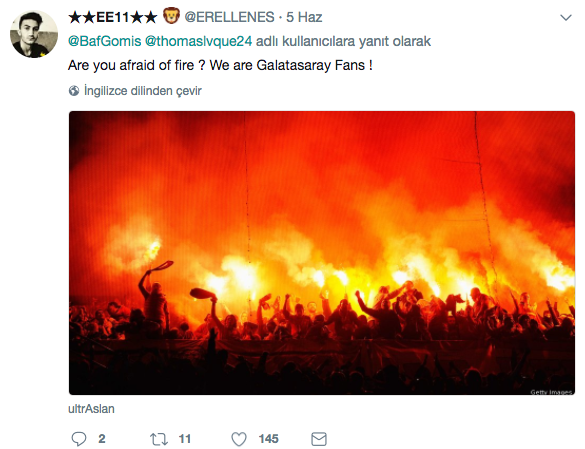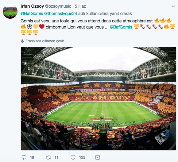 " Atmosfer, koreografi, dünyanın en iyi taraftarı, Galatasaray'a hoşgeldin " atılan tweeti beğendi.