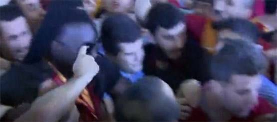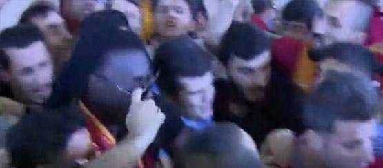 Polisler ve özel güvenliklerin tüm çabasına rağmen Gomis'e yürüyebileceği bir koridor oluşturulamadı.