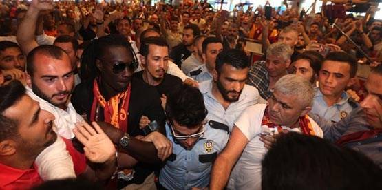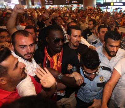 Gomis, önce apronda Galatasaray kaşkolu ile poz verdi sonrasında ise çıkış kapısına yöneldi. O esnada müthiş bir kalabalık tarafından karşılanan siyahi yıldızın gülümsemeye başlaması dikkat çekti.