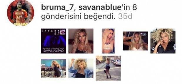 Galatasaray'ın 22 yaşındaki futbolcusu Bruma’nın sosyal medya üzerinden şarkıcı Savana Blues’un resimlerini beğenmesi dikkat çekti.
