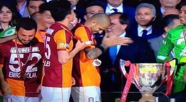 Türkiye Futbol Federasyonu Başkanı Yıldırım Demirören'in geçtiğimiz sezon kendisi hakkında söylediği sözler sebebiyle elini sıkmayan Melo, Süper Kupa finalinde aynısını yaparak elini sıkmadı.