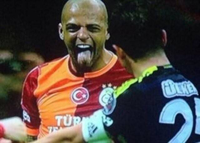 Emre Belözoğlu, Melo'ya yaptığı faulün ardından ikinci sarı karttan kırmızı kart ile oyundan atıldı. Melo, Emre'nin atılmasının ardından ilk önce dilini çıkardı ardından 'dışarı' şeklinde bir işaret yaptı.