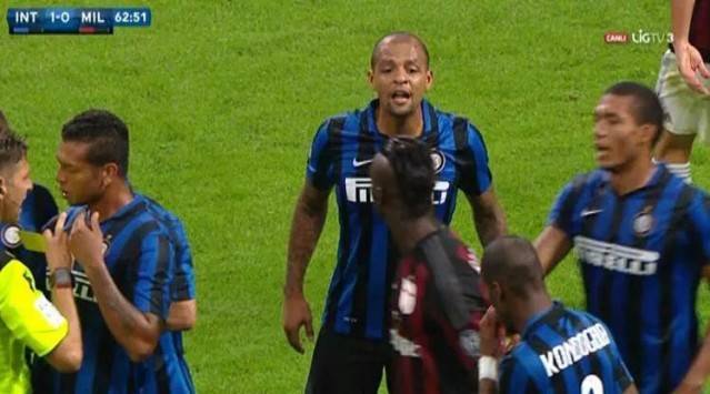 Karşılaşma öncesi takımlar ısınmak için sahaya çıktıklarında bir dönem Inter'de forma giyen Mario Balotelli ile şu anda Milan'ı çalıştıran Sırp teknik adam Sinisa Mihajlovic yoğun şekilde ıslıklandı. Balotelli, oyuna girdiği 61. dakikada da Interli taraftarlarca ıslıklara maruz kaldı.