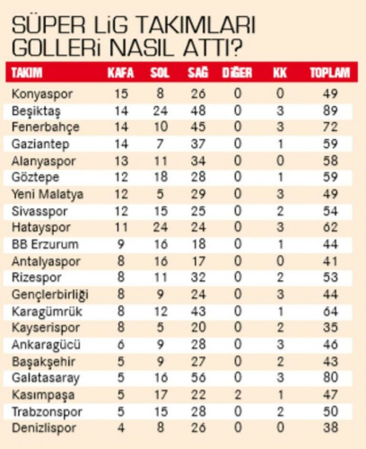 "Belki direkt ilişkilendirmeyi doğru bulmayabilirsiniz ama muhakkak bir korelasyon var: Galatasaray’ın bu sezon ligin en az kafa golü atan takımlarından biri olması da biraz bek performansıyla ilgili. Diagne, Falcao, Mohamed hepsi havada iyi santrforlar. Ama Galatasaray sezonu sadece 5 kafa golüyle tamamladı ki bu sayı Beşiktaş ve F.Bahçe’de 14..."