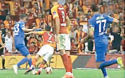 Mücadele G.Saray'ın 1-0'lık üstünlüğü ile devam ederken Rizeli İsmail, Yasin'in ayağına net bir şekilde bastı. Hakem Özkalfa pozisyonun nizami olduğunu söyledi.