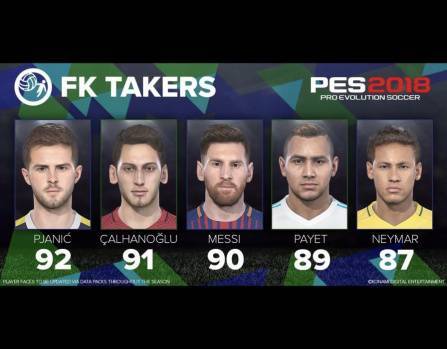 ABD'de 12 Eylül 2017'de, Türkiye'nin de içinde yer aldığı Avrupa ve Asya ülkelerinde ise 14 Eylül'de oyuncuların beğenisine sunulacak olan PES 2018'de en iyi 20 frikikçinin listesi belli oldu.
