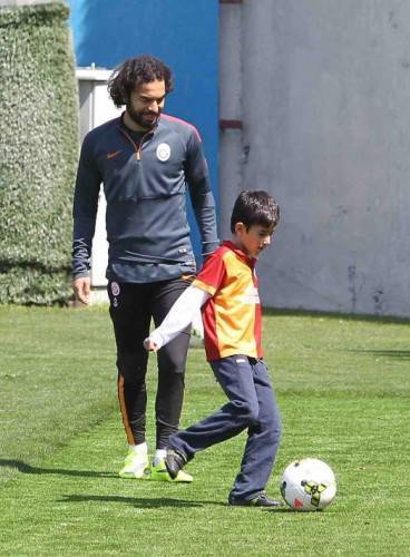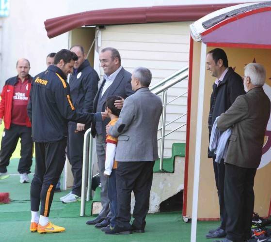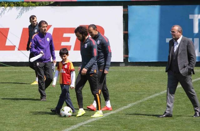 Galatasaray'ın Florya'da gerçekleşen antrenmanında Berkin Elvan soruşturmasını yürüten ve rehin alındığı Çağlayan Adliyesi'nde şehit olan Mehmet Selim Kiraz'ın oğlu da yer aldı.