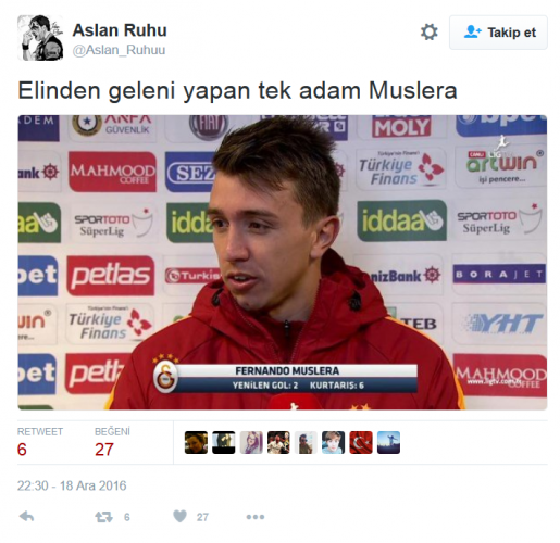 Muslera, yaptığı kurtarışlar ile yine gönülleri fethetti. İşte Osmanlı maçı sonrası atılan tweetler.