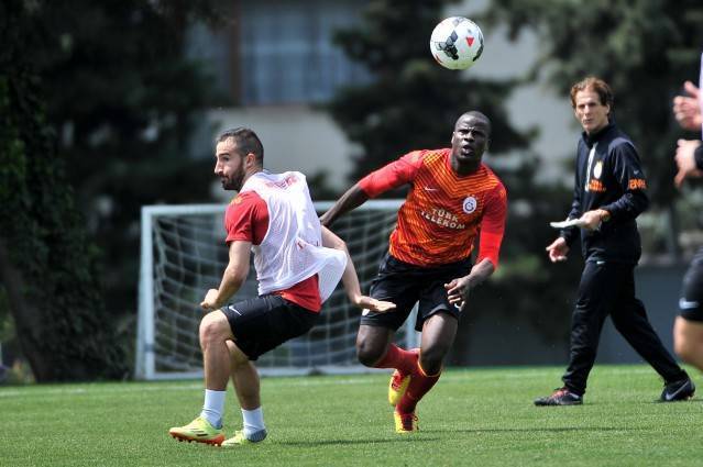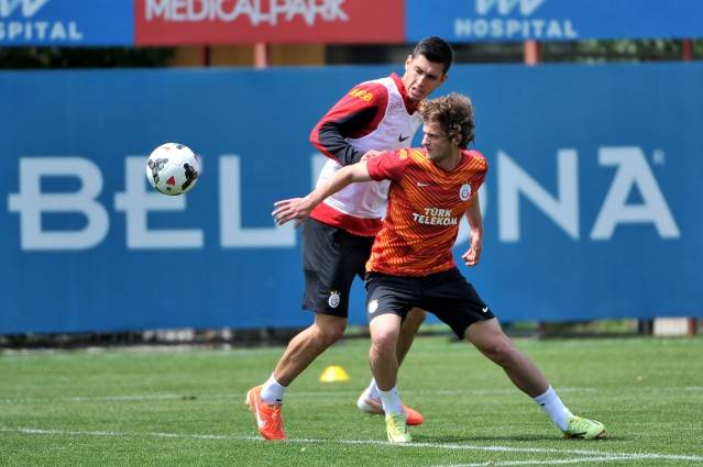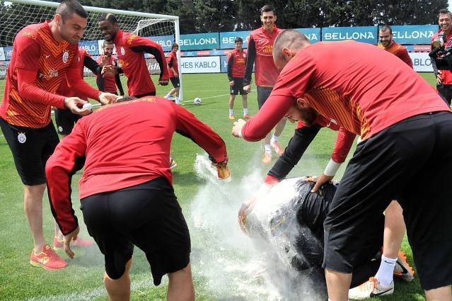 Ziraat Türkiye Kupası'nı havaya kaldıran Galatasaraylı futbolcular dün yapılan idmanda çocuklar gibi şendi.