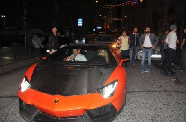 Yağmur Sarıoğlu, önceki akşam eşi Sabri’nin nisan sonunda 2 milyon 700 bin lira ödeyerek satın aldığı Lamborghini’siyle Asmalımescit’teydi.