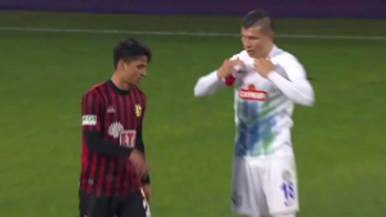 Maddi imkansızlıklar içerisinde olan Eskişehirspor'da oyuncuların rakip oyuncularla forma değiştirmesi yasaklanınca ortaya bu görüntüler çıktı.